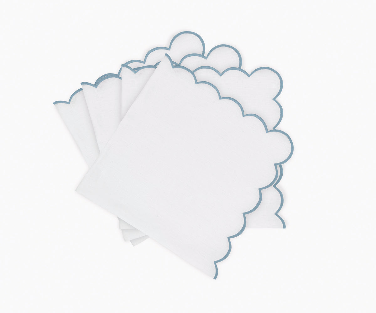 For nearly 100 years and three generations, Matouk has handcrafted luxury linens from the world’s finest materials. Their dedicated artisans in Fall River, Massachusetts are committed to creating the highest quality, most-loved bed, bath, and table linens for your home. The Dakota Napkin is subtle and sublime, crafted from Valentina linen and complemented by a scallop embroidered trim in versatile hues. This elegant assortment includes napkins, placemats, runners and tablecloths that fit any occasion and provide a delicate base on which to layer additional prints.