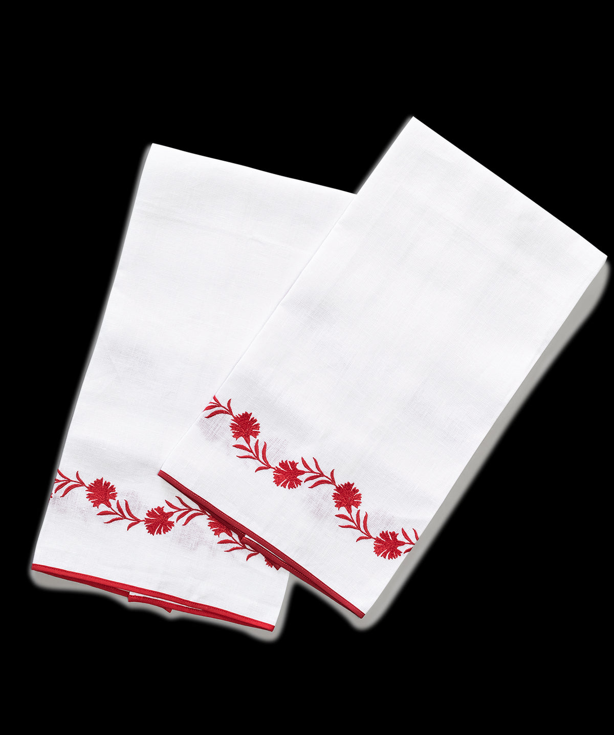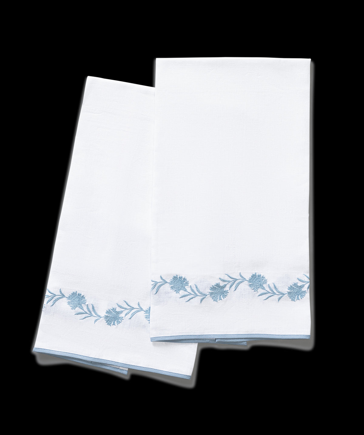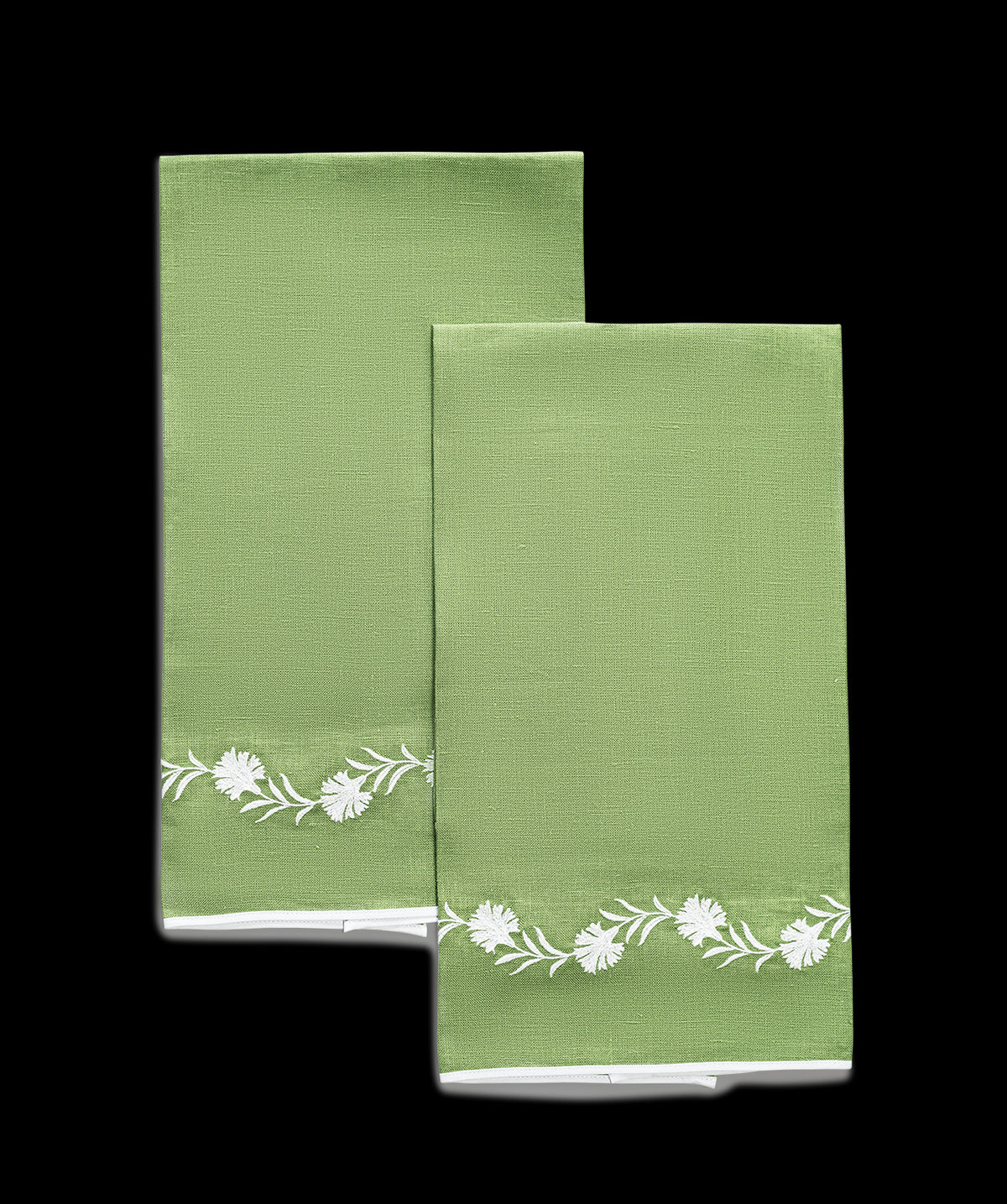 For nearly 100 years and three generations, Matouk has handcrafted luxury linens from the world’s finest materials. Their dedicated artisans in Fall River, Massachusetts are committed to creating the highest quality, most-loved bed, bath, and table linens for your home. Embroidered with a trailing floral motif and crafted in luxurious linen, the Daphne Guest Towels, Set of 2 adds delicate charm to any bathroom.
