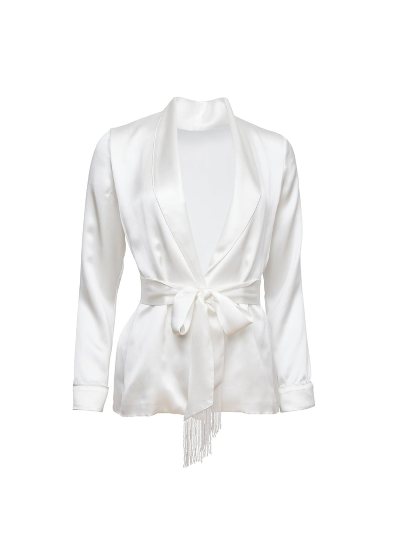 Inspired by Charles Baudelaire's masterful collection of poetry entitled “Les Fleurs du Mal,” Jennifer Zuccarini founded Fleur du Mal with the belief that wearing beautiful lingerie should be an everyday affair. Tastefully provocative, the luxury brand has amassed a cult following of devotees who adore the sultry and empowering pieces. The Daphne Lace Angel Sleeve Robe in luxe silk charmeuse features hand-beaded French lace appliqué and a playful fit with wide sleeves. Finish off the look as you wrap it across the body and secure it with a sash.