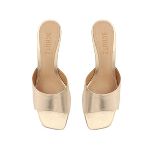 Founded in 1995 by Alexandre Birman, Schutz redefines attainable luxury with its stylish footwear. With each new release, the brand delivers of-the-moment collections, defined by confident, bold, designs around which entire outfits can be built. Minimalist elegance takes center stage in the Dethalia Leather Sandal, a leather mule with contemporary touches, like a sleek, square toe and practical mid heel.