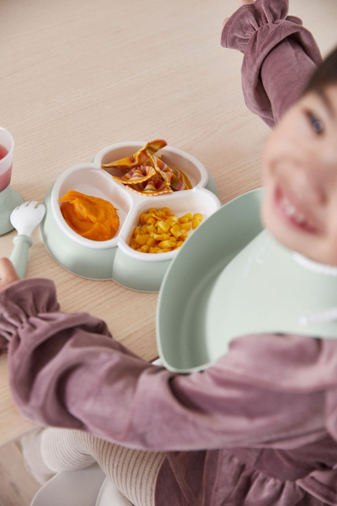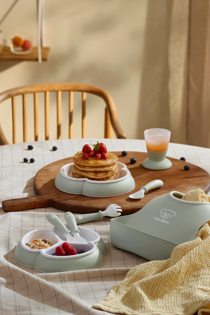 Rooted in Swedish design and a family-first ethos, BabyBjörn crafts intuitive, durable essentials that nurture the bond between parent and child while celebrating the joy of early moments. Thoughtfully designed for little hands, the Dinnerware Set in Powder Green, Set of 8, brings function and charm to every mealtime. From the trefoil-shaped plate that helps little ones scoop with ease to the cleverly balanced utensils and easy-grip cup, every piece encourages independence and confidence at the table.
