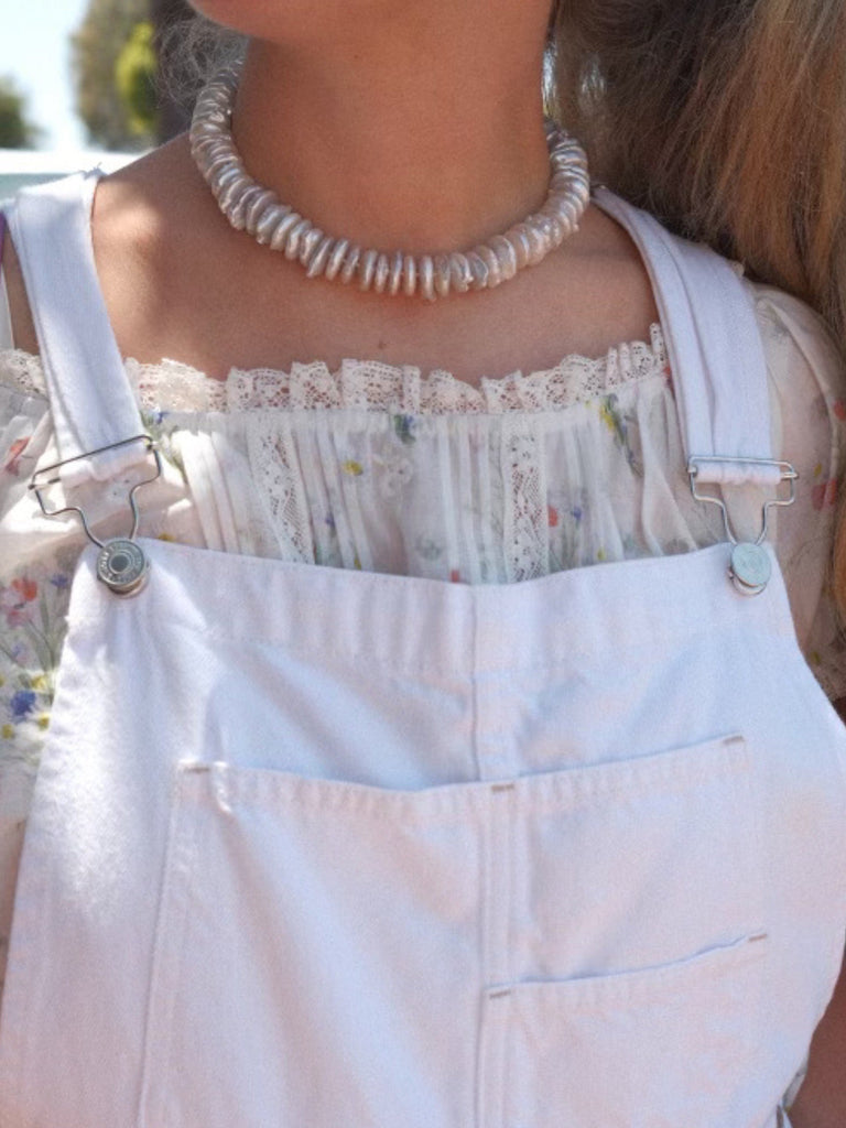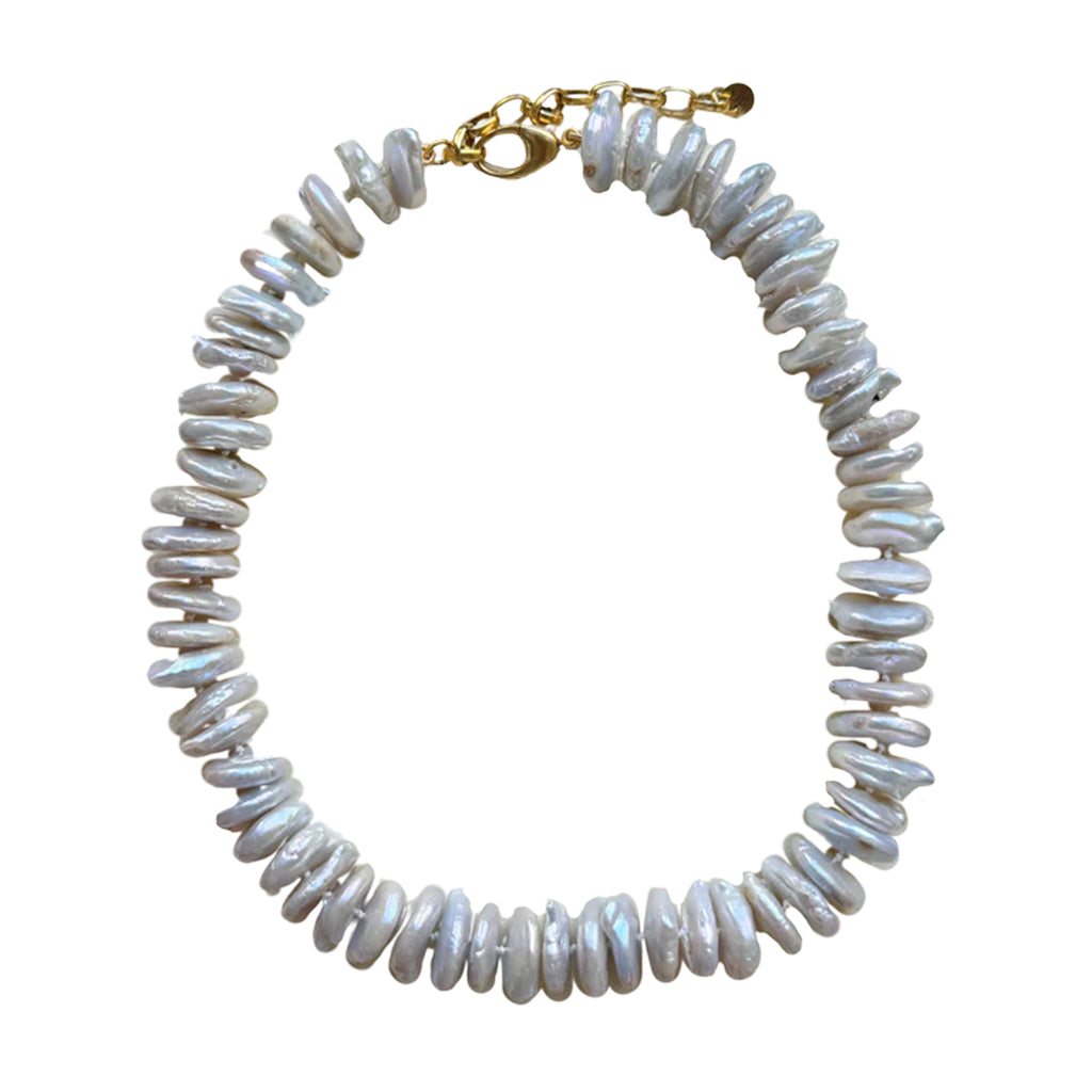 Created by Alice Marcuz was born out of a deep-rooted love for fashion and fine jewelry. After years immersed in the world of style and design in New York City, Alice earned her GIA certification in gemstones, refining her craft and creative vision. Now based in Charleston, South Carolina, she draws inspiration from blending color and texture—infusing every design with an effortless sense of joy. Created by Alice Marcuz is dedicated to bringing playful, stylish, and timeless jewelry to everyday looks. A luminous addition to any jewelry rotation, the Disc Pearl Necklace showcases flat semi-precious freshwater pearls for a clean, elegant finish that elevates both casual and occasionwear alike.