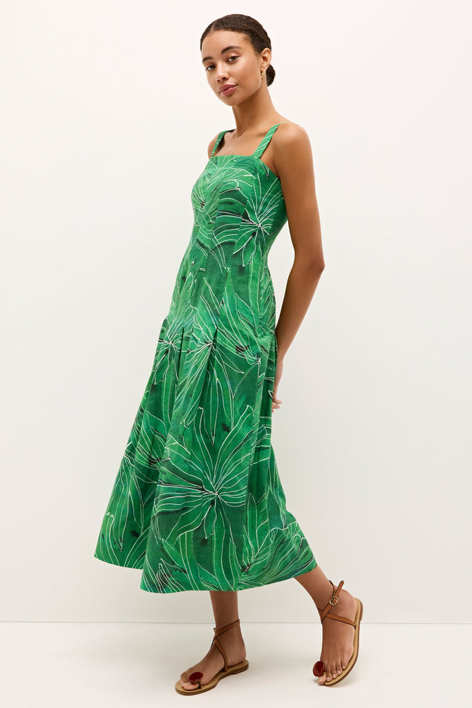 Empowering women through vivid hues and the joy of style, Sarah Doggett Evenson uses her archive of artistic prints, fine fabrics, and flattering silhouettes to make each Marie Oliver piece instantly uplifting. The Dixon Dress in Amazon is a true sundress—the kind of feminine silhouette that just feels good to wear thanks to the flattering drop waist created by stitched down box pleats and the adjustable straps, which allow for a more personalized fit. Try it in this saturated emerald green botanical print for summer.
