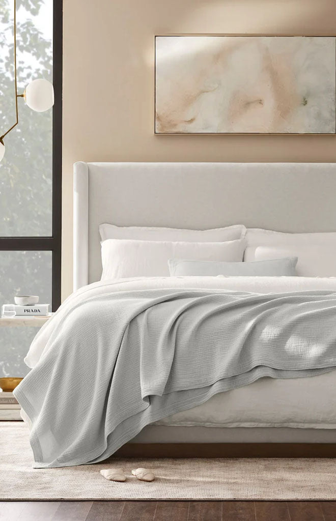 Since 2014, Boll & Branch has redefined the textiles industry, setting a higher standard in craft and care. Each thoughtfully made essential brings extraordinary comfort to your home, beginning at the source with the finest natural materials. The Dream Bed Blanket in Mist offers a casual style with a cloud-like touch, crafted to be exceptionally soft and inviting. Its unique design is made from 4 lightweight layers of ultra-fine organic cotton, all pre-shrunk to create natural folds with a distinct texture and supple stretch. Dyed and washed for a subtle tonal gradient, this laid-back blanket brings incredible softness you’ll reach for night after night.