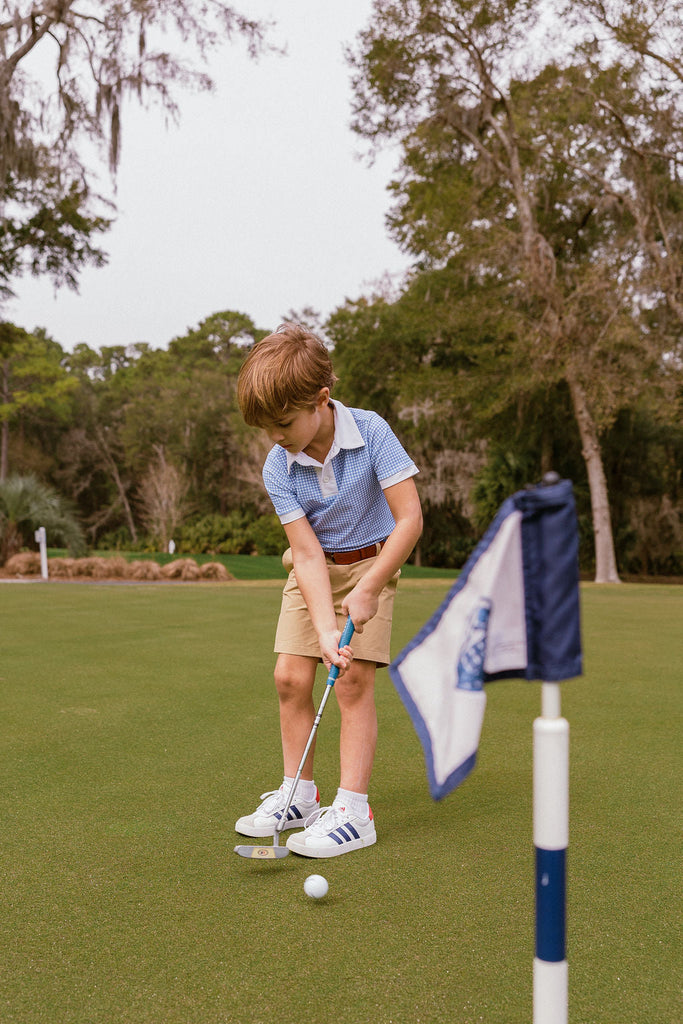 A polished blend of style and sport, Courtside Kids reimagines children’s activewear with performance fabrics, modern tailoring, and a classic athletic sensibility—made for everywhere from the playground to the country club. The Dress Short in Khaki elevates the brand’s signature Super Short with a dressier twist, featuring a pull-on waistband, decorative button, and functional belt loops. Cut slightly longer for a polished fit, these shorts are crafted from the same durable, no-iron performance fabric as the original, available with or without a built-in liner for added comfort and versatility.