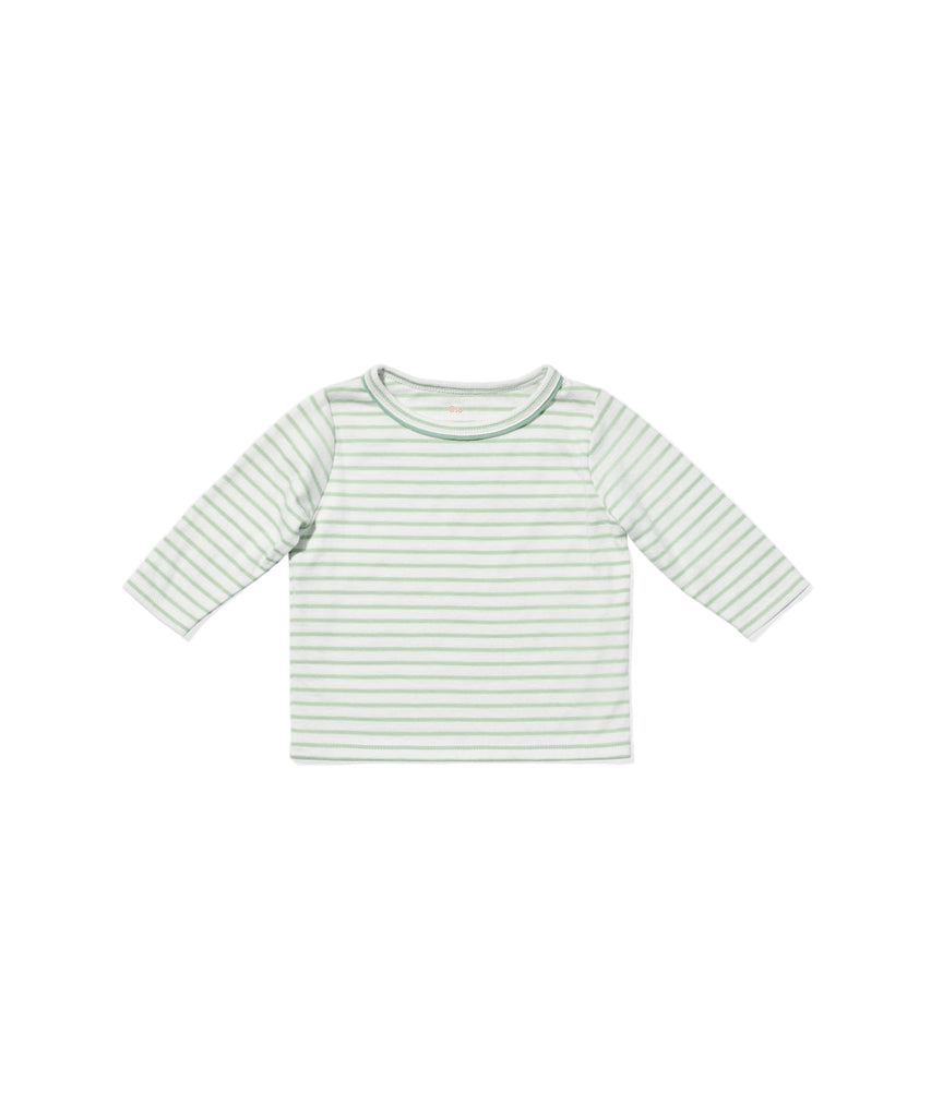 Oso and Me makes children’s clothing that’s easily worn, easily washed, and designed to make getting dressed fun. Sustainably crafted with growing kids in mind, these high-quality pieces are made with an eye for detail and built to last. The Edward Baby T-Shirt in Dusty Seafoam Mini Stripe is a long-sleeve take on the brand’s bestselling tee, crafted from the soft yet durable Float Jersey™ that combines comfort with everyday resilience. Accented with playful contrast elastic piping and available for monogramming on the upper left side, it’s a cozy wardrobe staple made for year-round wear.