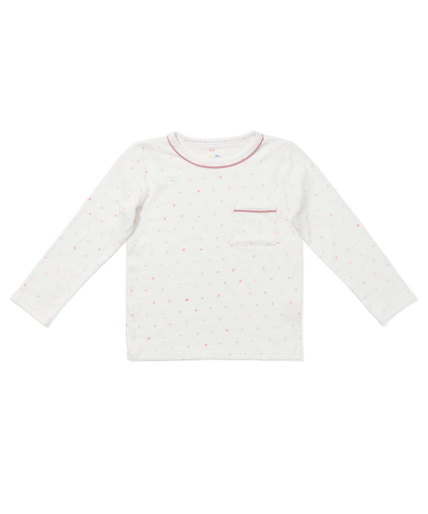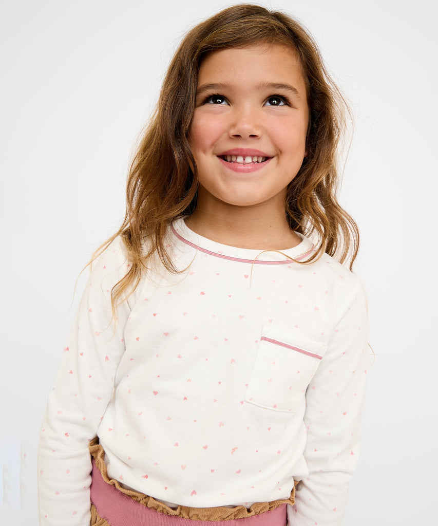 Oso and Me makes children’s clothing that’s easily worn, easily washed, and designed to make getting dressed fun. Sustainably crafted with growing kids in mind, these high-quality pieces are made with an eye for detail and built to last. The Edward T-Shirt in Rose Hearts is a long-sleeve take on the brand’s bestselling tee, cut from the soft yet durable Float Jersey™—a breathable organic cotton knit that little ones will love to live in. Finished with playful contrast piping at the neck and pocket, and available for monogramming above the chest pocket, it’s an everyday favorite for every adventure.
