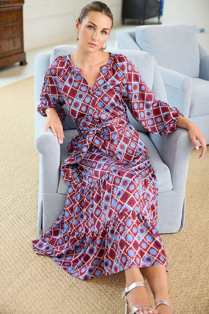 Timeless but playfully elegant, Abbey Glass is an approachable luxury womenswear brand based in Atlanta, Georgia. Effortlessly sophisticated, the Elise Dress in Burgundy Sunburst Satin is crafted from lightweight satin that drapes beautifully in an elegant maxi silhouette. A flattering V-neckline, tiered skirt, and removable sash belt lend a romantic yet polished touch, while the rich burgundy hue offers year-round versatility. Style it with boots and a tailored jacket for a chic look that transitions seamlessly from day to night.