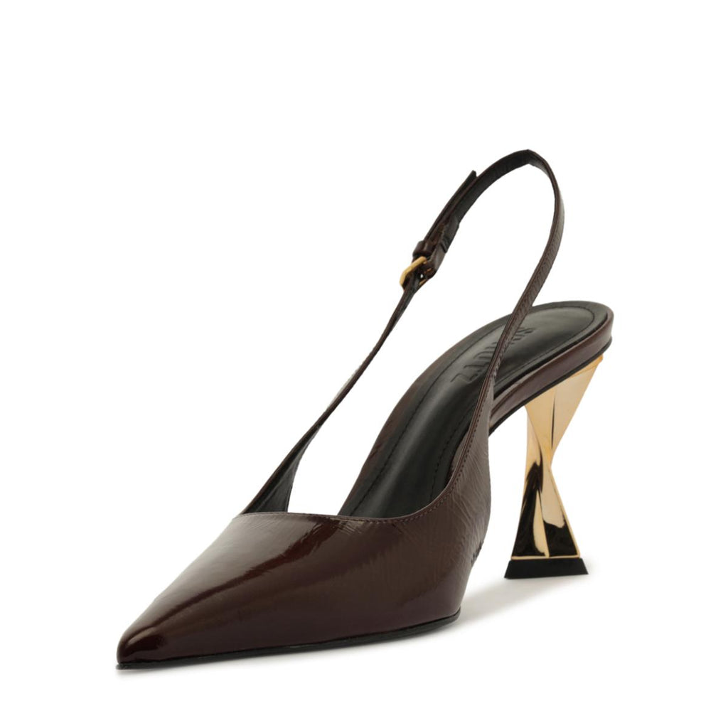 Founded in 1995 by Alexandre Birman, Schutz redefines attainable luxury with its stylish footwear. With each new release, the brand delivers of-the-moment collections, defined by confident, bold designs around which entire outfits can be built. The Elisha Pump in Maplewood commands attention with its high-shine patent leather finish and gleaming gold stiletto heel. From date nights to downtown dinners, this design delivers effortless edge and a luxe, modern appeal.