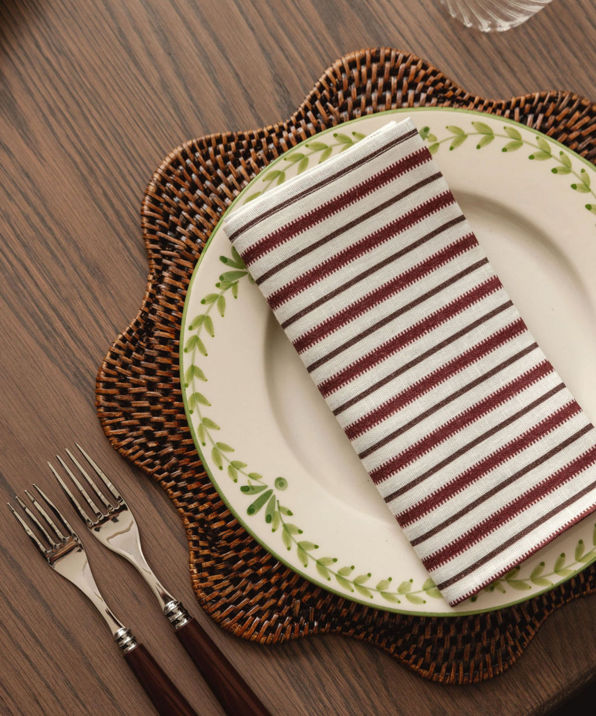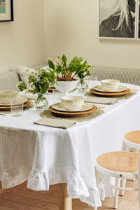 A belief in buying less, and better, leads Rebecca Udall to the finest materials and most capable makers for her luxe linens and homewares. Focusing on provenance, longevity and timelessness, these are investment pieces that can elevate any table, room, or home. The Elouise collection is individually hand-painted in a historical ceramics region in Portugal. Ideal for everyday dining, the Elouise Dinner Plate in Green, Set of 6 adds interest to mealtimes. Style with the rattan chargers for easy day-to-day styling, adding a linen placemat or tablecloth for elevated occasions.