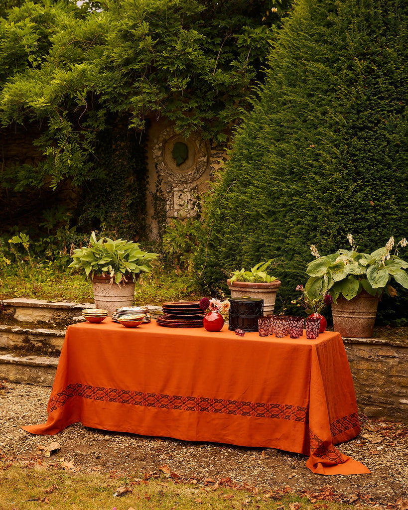 Inspired by the pages of Cabana—a magazine for a new generation of globetrotters—Casa Cabana’s homewares both explore and expand the worlds we share with our interiors. The Terracotta Collection is a stunning ode to Italy's visual identity, defined by the rich, earthy tones of the country’s natural landscape, its celebrated terracotta rooftops, and sunbaked joie de vivre. The Engraved Oak Leaf Water Tumbler in Burgundy is crafted from handmade, lead-free crystal and etched with a hand-engraved oak leaf motif. Its warm tone and nature-inspired detailing make it a refined addition to everyday drinkware.
