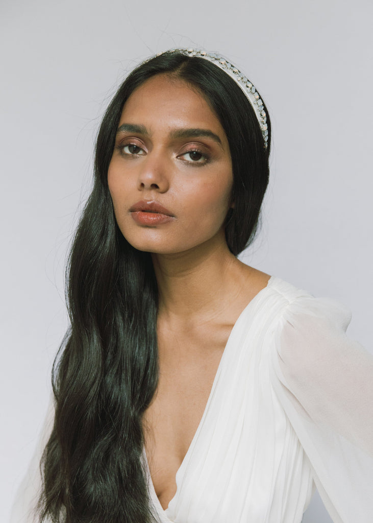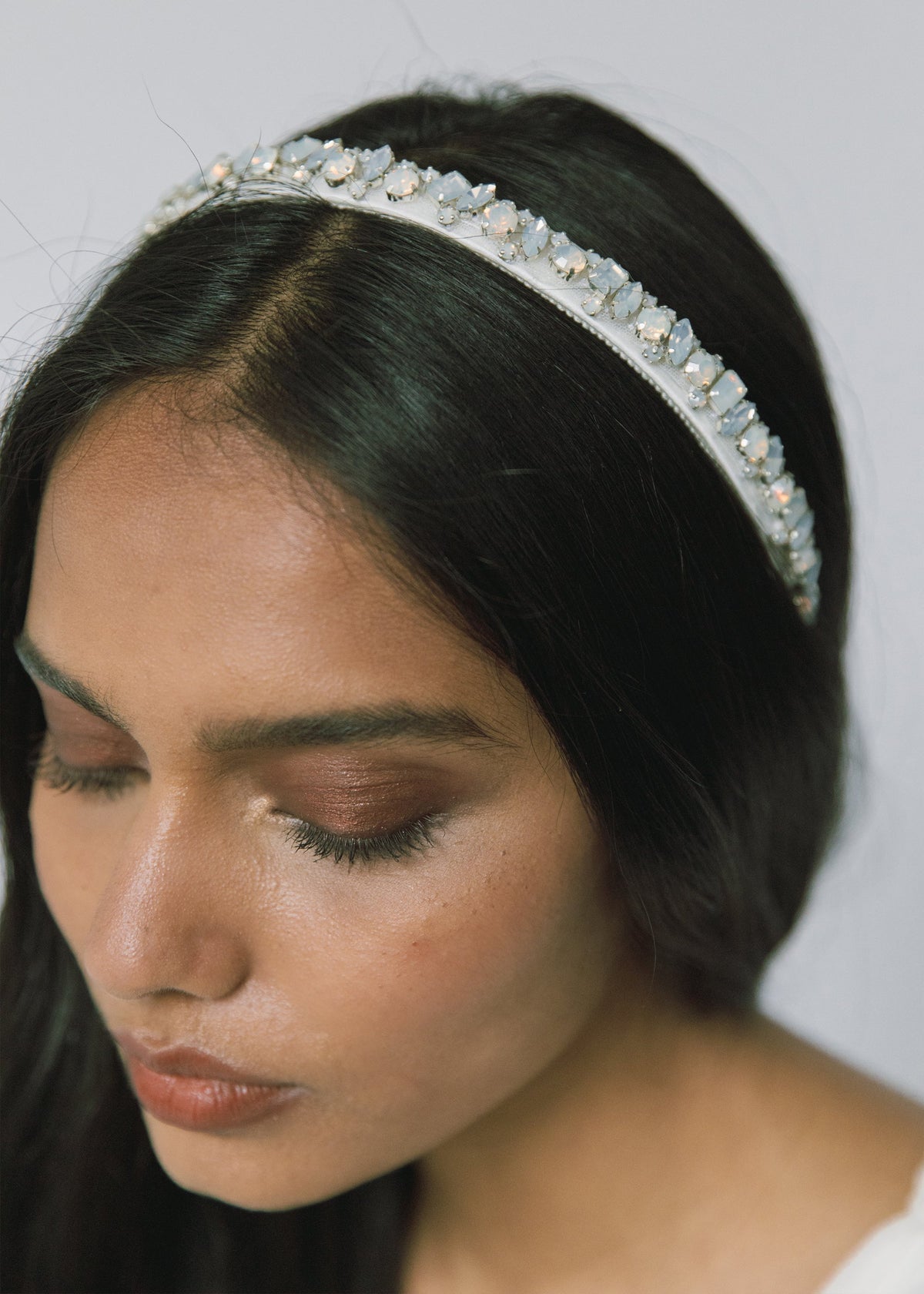 Jennifer Behr, the founder of her namesake luxury hair accessory brand that has blossomed into one of New York City’s foremost ateliers for jewelry, as well as bridal says, “Everything has a story to tell.” In every crystal, pearl, and ribbon, you’ll find the utmost quality and a sense of romance, as each piece reveals a modern interpretation of centuries-old regalia. This handmade stunner creates a halo of light, providing the most flattering natural glow imaginable. Each one is embroidered with crystals to create an all-over shimmer and is built on a comfortable, no-pinch base.