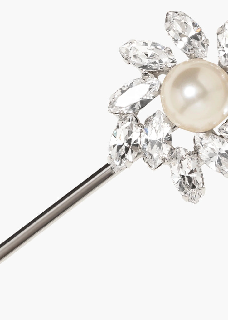 Rhodium-plated brass setting. Fine Austrian crystals with crystal-pearl center. Curved bobby pin design for a secure, comfortable fit. Handmade in New York City.