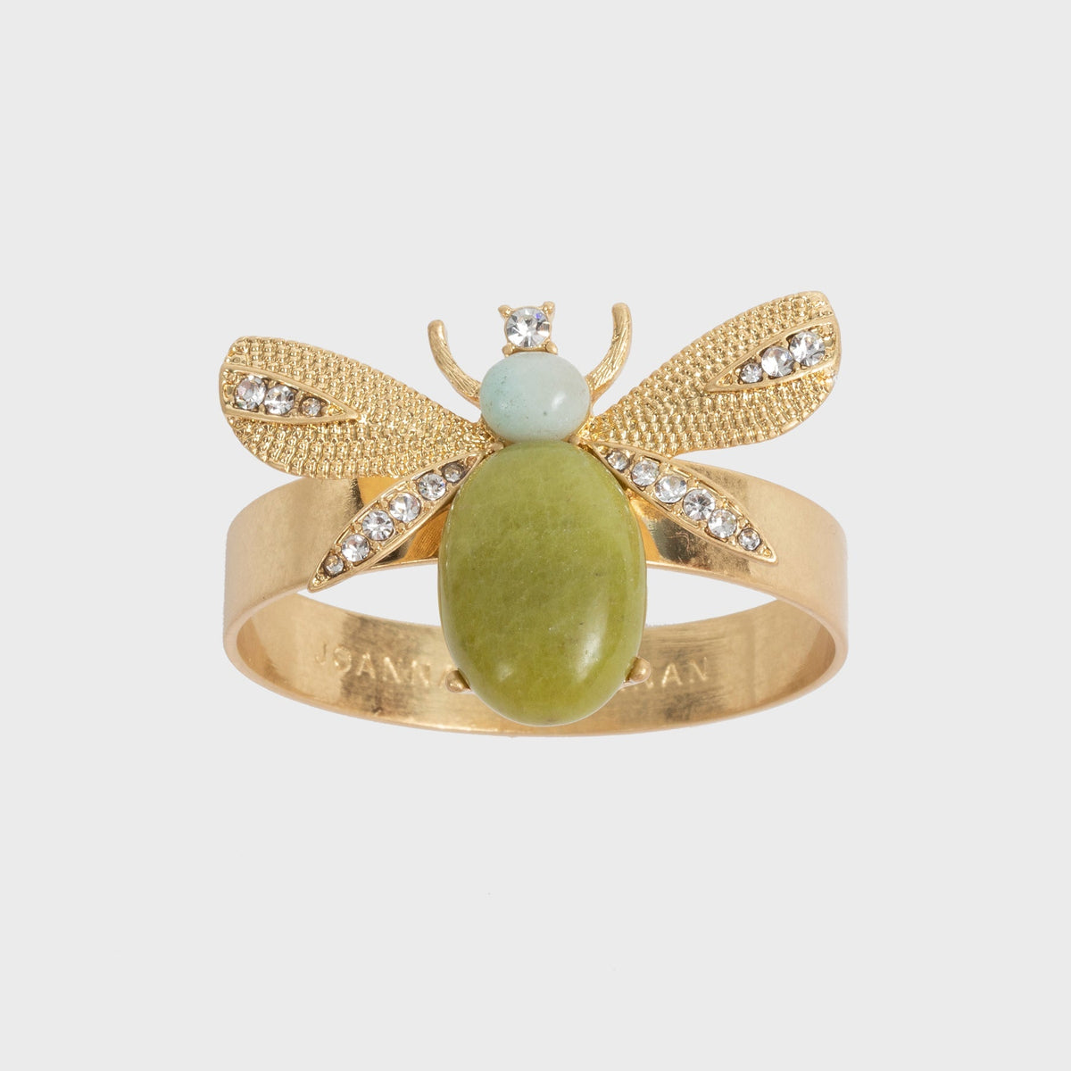 Inspired by her mother’s flare for holiday decorating, Joanna Buchanan has turned her love of travel and knowledge gleaned from twenty years in fashion retail into an eclectic line of tabletop, barware, gifts, and decor. Boasting semi-precious jasper as the body stone, as well as unbelievably intricate details, the Etched Wing Bug Skinny Napkin Rings in Lemon Jasper, Set of Four is a gorgeous accent to any table.