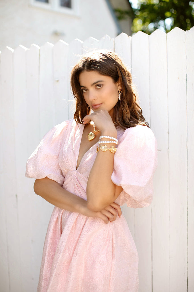 The mother-daughter duo behind Brinker + Eliza combine their experience in metalsmithing and fashion to create incredibly unique jewelry that feels custom-made. Employing pearls, shells, and earth’s most prized organic forms, these are pieces to be not just worn but treasured. The Ethel Bracelet brings a fresh spin to timeless sophistication with its double strand of luminous freshwater pearls—an heirloom-inspired design that embodies modern romance.
