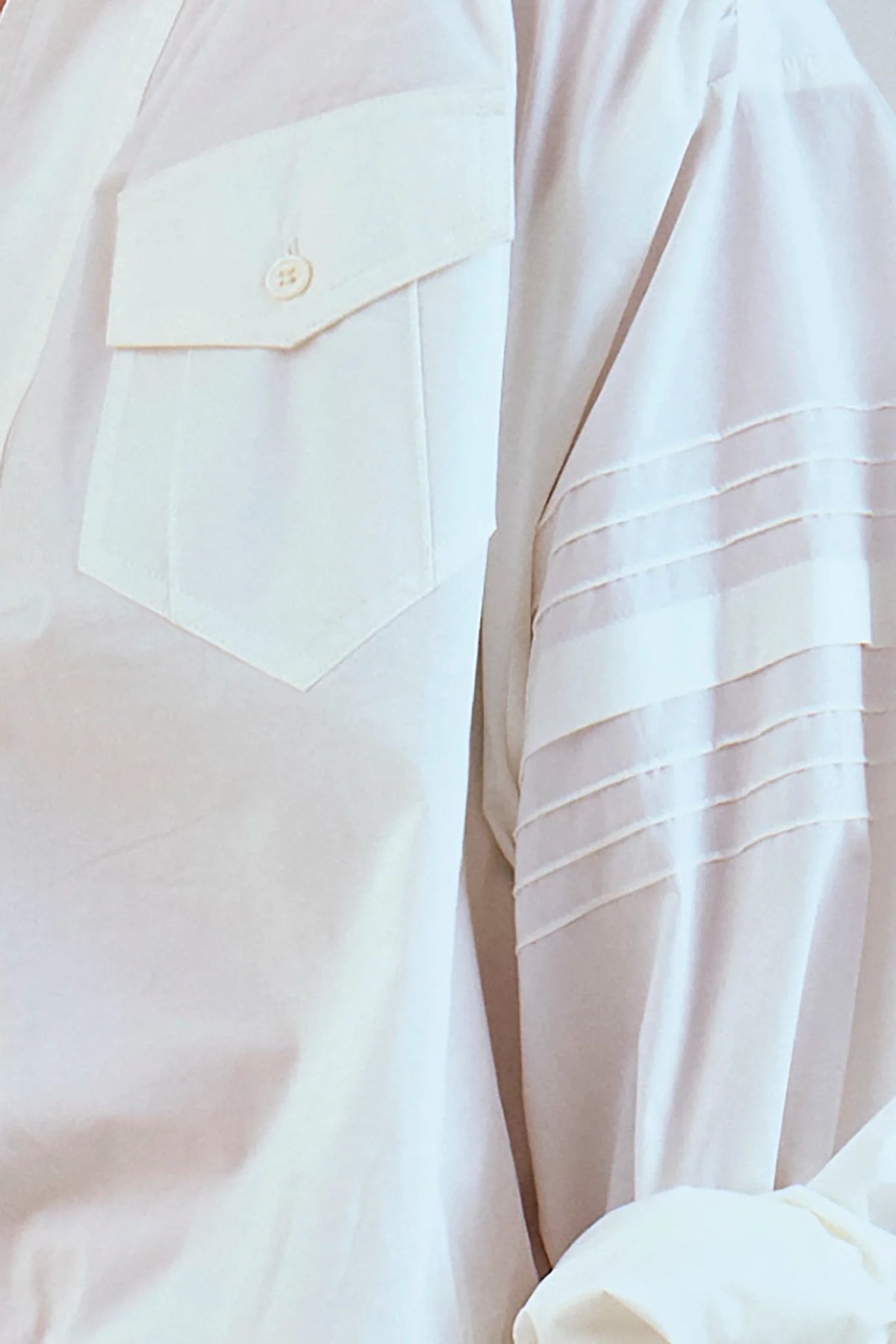 Hunter Bell strives to spark joy and inspiration with clothing that empowers women to embrace their personal style. The New York City-based brand is all about fashion-forward, fun looks, designed with detailed craftsmanship and exceptional wearability. This timeless staple features thoughtful details like an open collared neckline, pleat detailing along the sleeves, a back yoke seam, and delicate gathering at the back and shoulders.