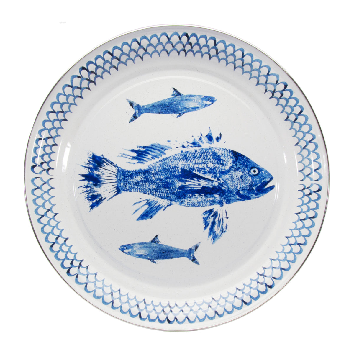 Founder Peggy Hedgpeth created Golden Rabbit to make everyday entertaining feel effortless. With functionality, safety, and durability at the forefront, the brand’s distinctive designs—from traditional enamelware to kid-friendly sets—set it apart in kitchens and dining rooms the world over. Coated porcelain enamel and trimmed with stainless steel to prevent chipping, the Large Tray in Fish Camp adds a dash of retro maritime style and sophistication to your family style service of meats off the grill, fresh veggies, salads, or any of your favorite larger items.