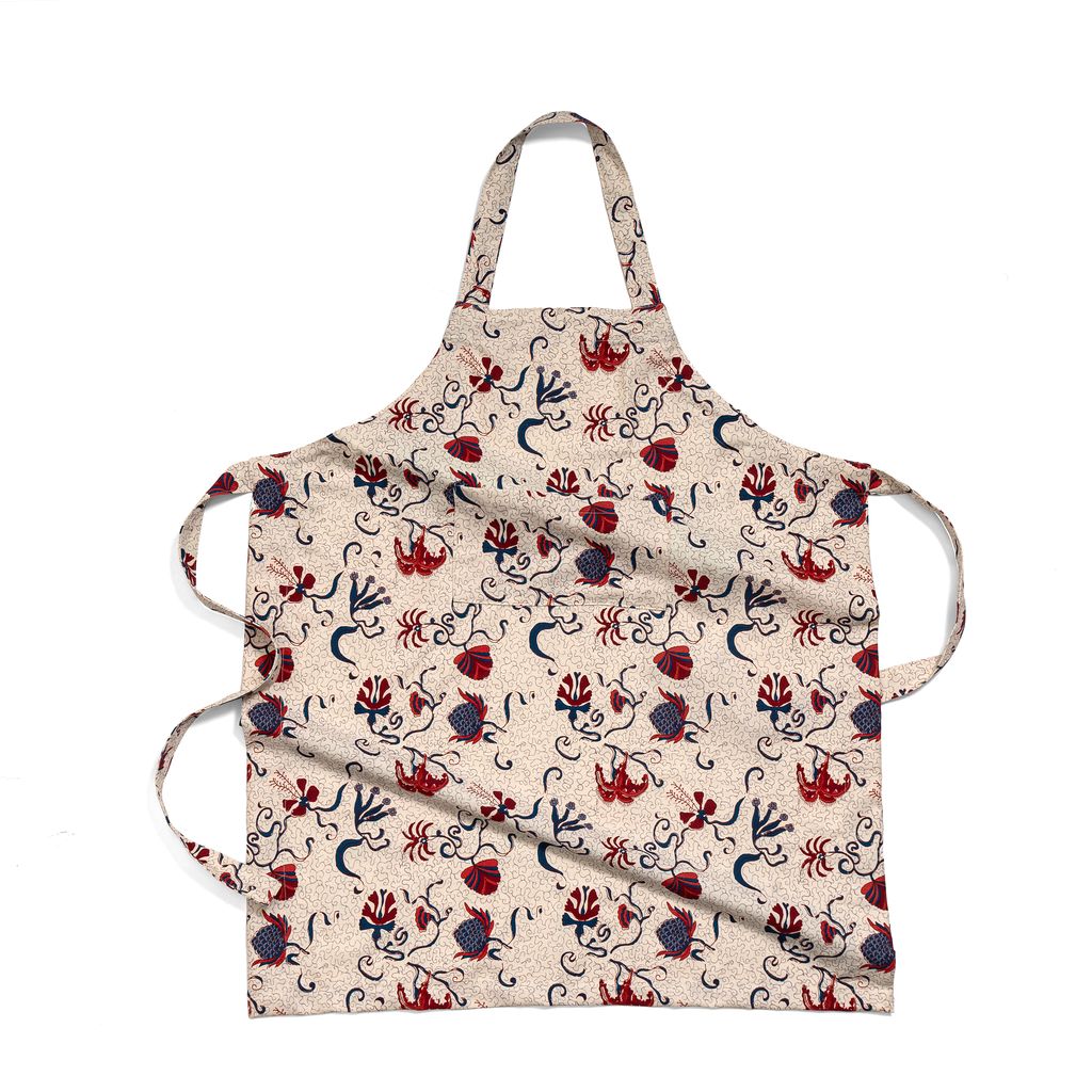 Idyllic landscapes, sumptuous colors, and the vibrant beauty of Southern France describes Couleur Nature. This brand of hand-painted table linens aims to bring a Provençal sense of effortlessness, rich culture, and joie de vivre to your life and home—no matter where you live. With its curling vines and flowers, the rich harvest tones of the Fleur des Indes Apron in Blue & Red is exotic and sophisticated. Combining Eastern motifs with classic French styling, these table linens are ideal for formal or festive events. Couleur Nature’s French linen cooking aprons are quality-constructed, chic and practical. Designed exclusively for Couleur Nature by Parisian artist Bruno Lamy.