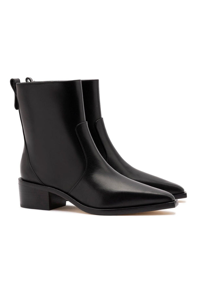 Bold colors, playful patterns, and chic silhouettes are hallmarks of Larroudé, a shoe brand born of the pandemic from industry veterans and husband-and-wife team Marina and Ricardo Larroudé. Manufactured in Brazil, Larroudé shoes are designed with the consumer and community in mind, never compromising on style, fit, and quality. The Florencia Low Boot in Black Leather is a reimagining of the brand’s iconic silhouette, offering a sleek, minimalist profile with everyday versatility. Crafted from smooth napa antique leather, it features a softly pointed toe and low block heel that strike the ideal balance between comfort and sophistication.