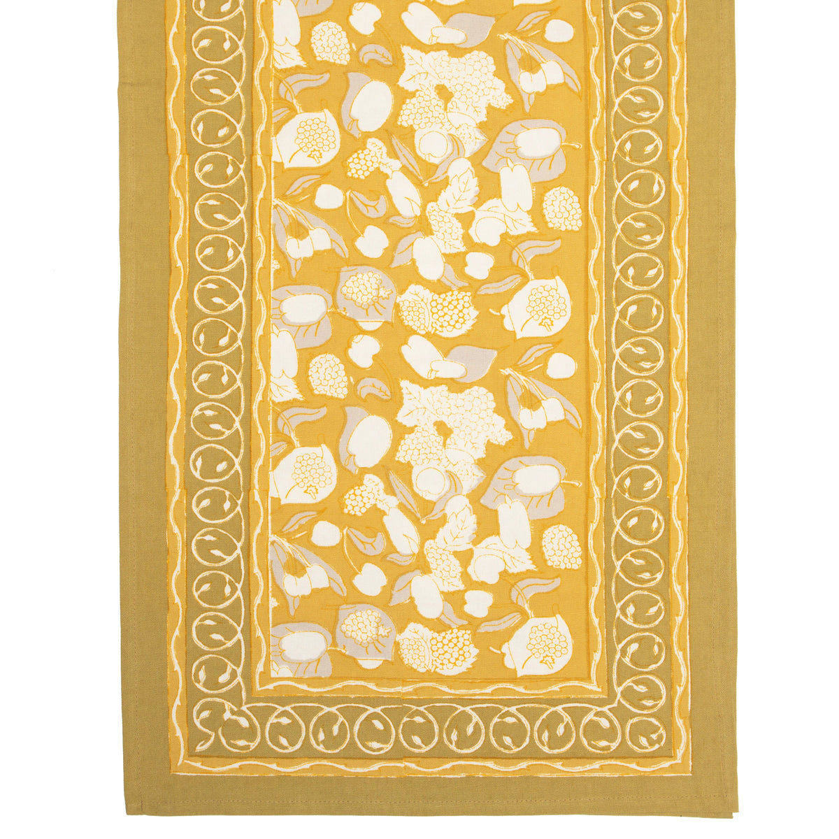 Idyllic landscapes, sumptuous colors, and the vibrant beauty of Southern France describes Couleur Nature. This brand of hand-painted table linens aims to bring a Provençal sense of effortlessness, rich culture, and joie de vivre to your life and home—no matter where you live. The Forest Harvest Runner Grey & Mustard features a pattern bursting with rich, meadow-inspired colors. Delightful and bold, this runner creates a beautiful landscape for all of your delicacies. An elegant addition to any tablescape.