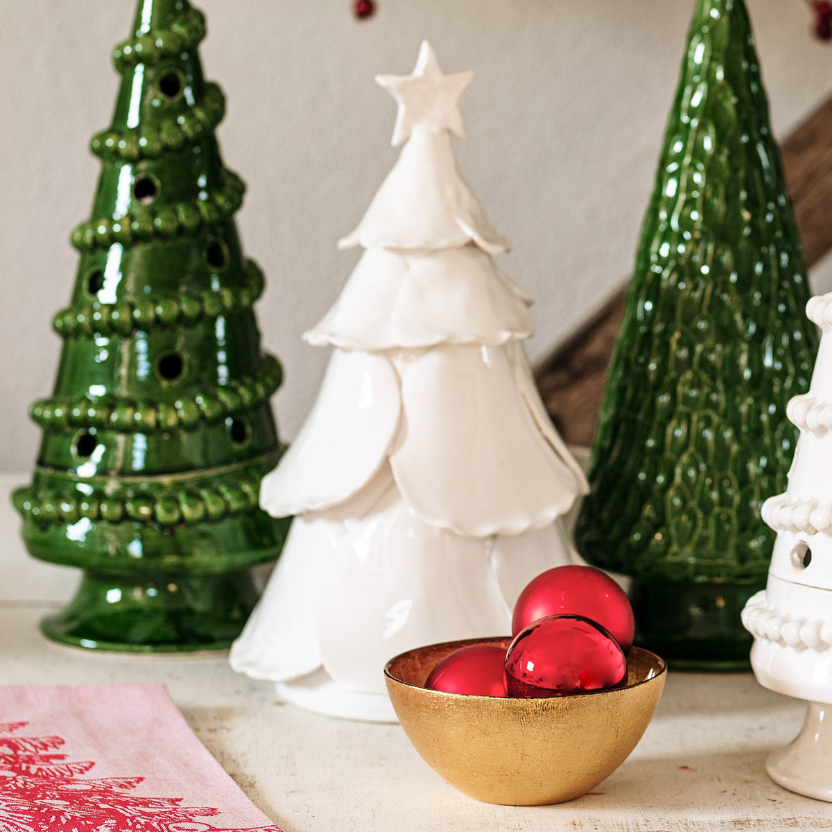 Inspired by Italian lifestyle, history, and culture, VIETRI uses the highest-quality clays from the soil of Italy’s countryside to produce beautiful, everyday items for your home. Hand-painted details, quality glazes, and fine craftsmanship help you savor the moments spent at your table and the company of those who join it. The Foresta Medium Ruffled Tree in Green is created with talent and love by maestro artisan Stefano Roselli. Each tree is a work of art with intricate detail and expert craftsmanship. Display it on its own or create a winter wonderland with a variety of Foresta trees.