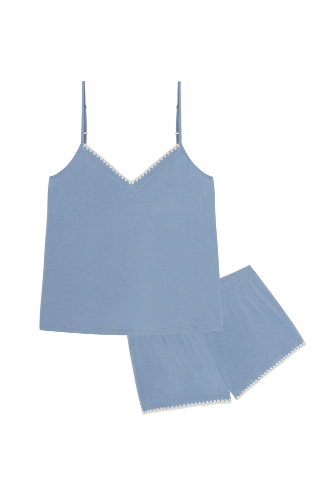 In 1996, Eberjey co-founders Ali and Mariela understood the visceral desire for beautiful, functional sleepwear that supported sleep and individual style. At last, pajamas can be sensual, comfortable, tailored, and effortless. Soft-to-the-touch, the Frida TENCEL™ Modal Cami & Short PJ Set in Wedgewood Blue/Ivory features a breezy shape, extra coverage, and a fit that you can wear and gift with confidence.