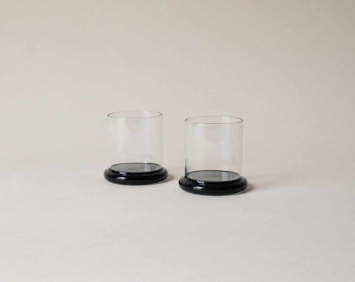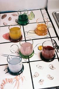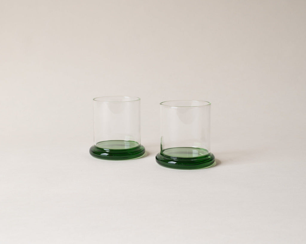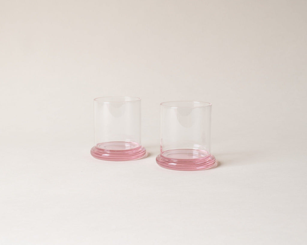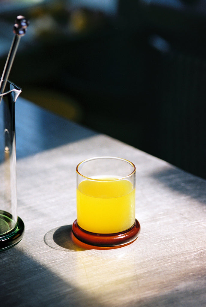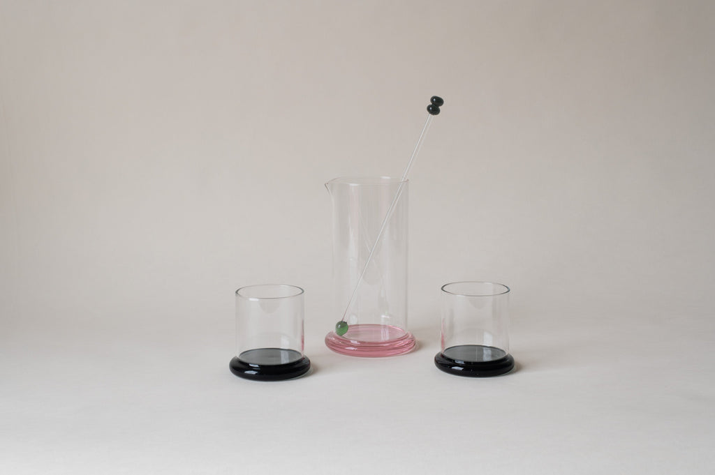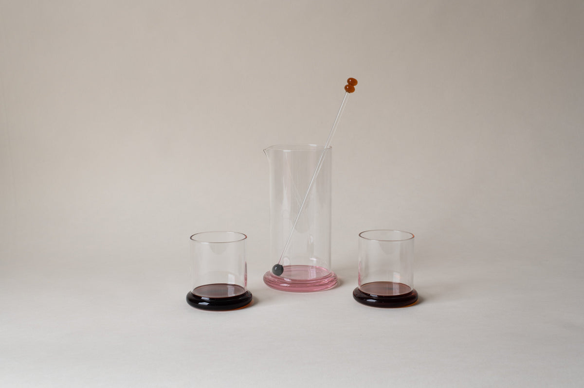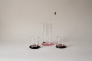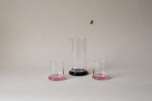 From her studio in New York City, French-American designer Sophie Lou Jacobsen explores the relationship between humans and objects by imbuing each of her unique glass pieces with elements of surprise and delight, creating a visual poetry around the rituals of our everyday. A set of two borosilicate glass tumblers, with matching colorful bases, the Fritter Tumbler Set is ideal for classic cocktails, your favorite aperitif or digestif, water, or simply a splash of juice. We love it paired with the Fritter Cocktail Mixer for a matching set.