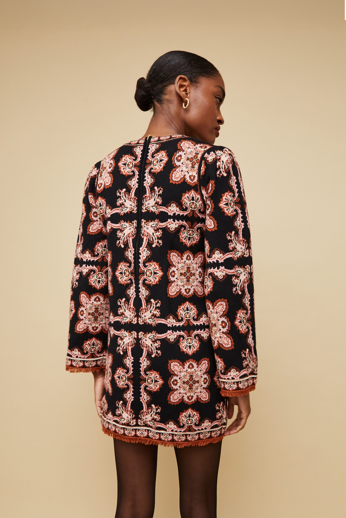 Founded by three New York City-based mothers who met through their kids, Cara Cara’s hallmarks include crisp poplin, house-designed prints, and casual glamour. The inspiration for their ethical womenswear comes from interior design, as well as the world’s most exotic locales. The Fritz Dress in Black Paisley Scarf channels vintage sophistication with its striking print and fluid silhouette. Designed with a flattering halter neckline and an elegant tiered skirt, this statement piece moves beautifully from day to evening. Its effortless drape and intricate scarf-inspired pattern make it a standout in any season.