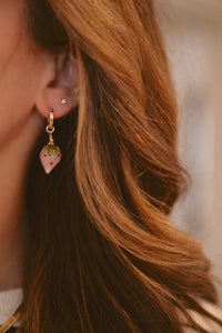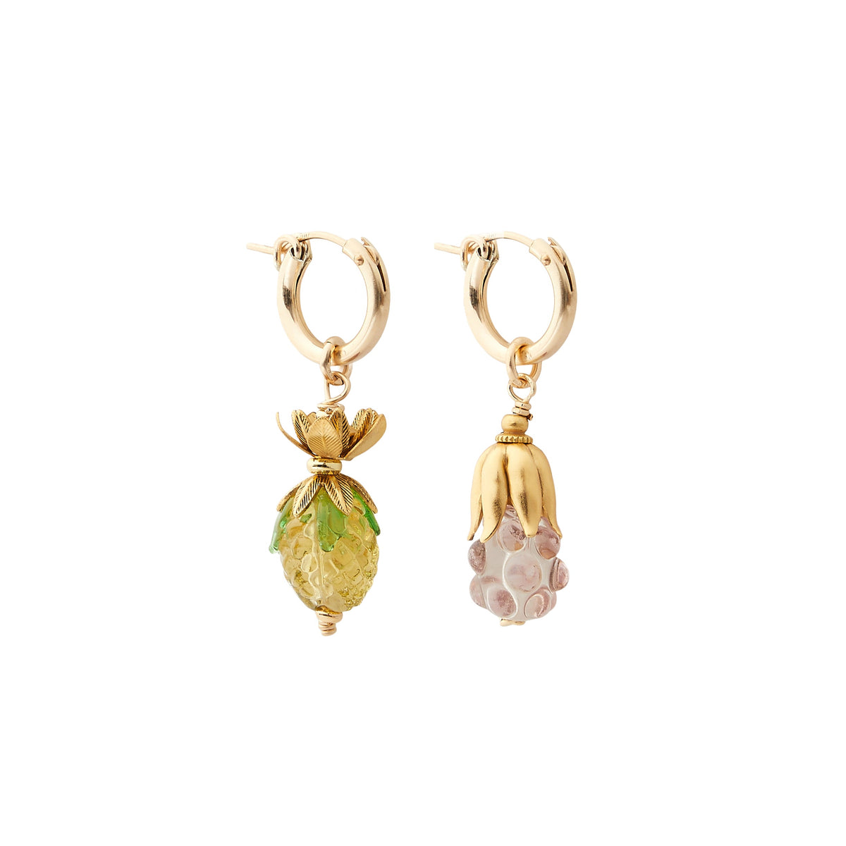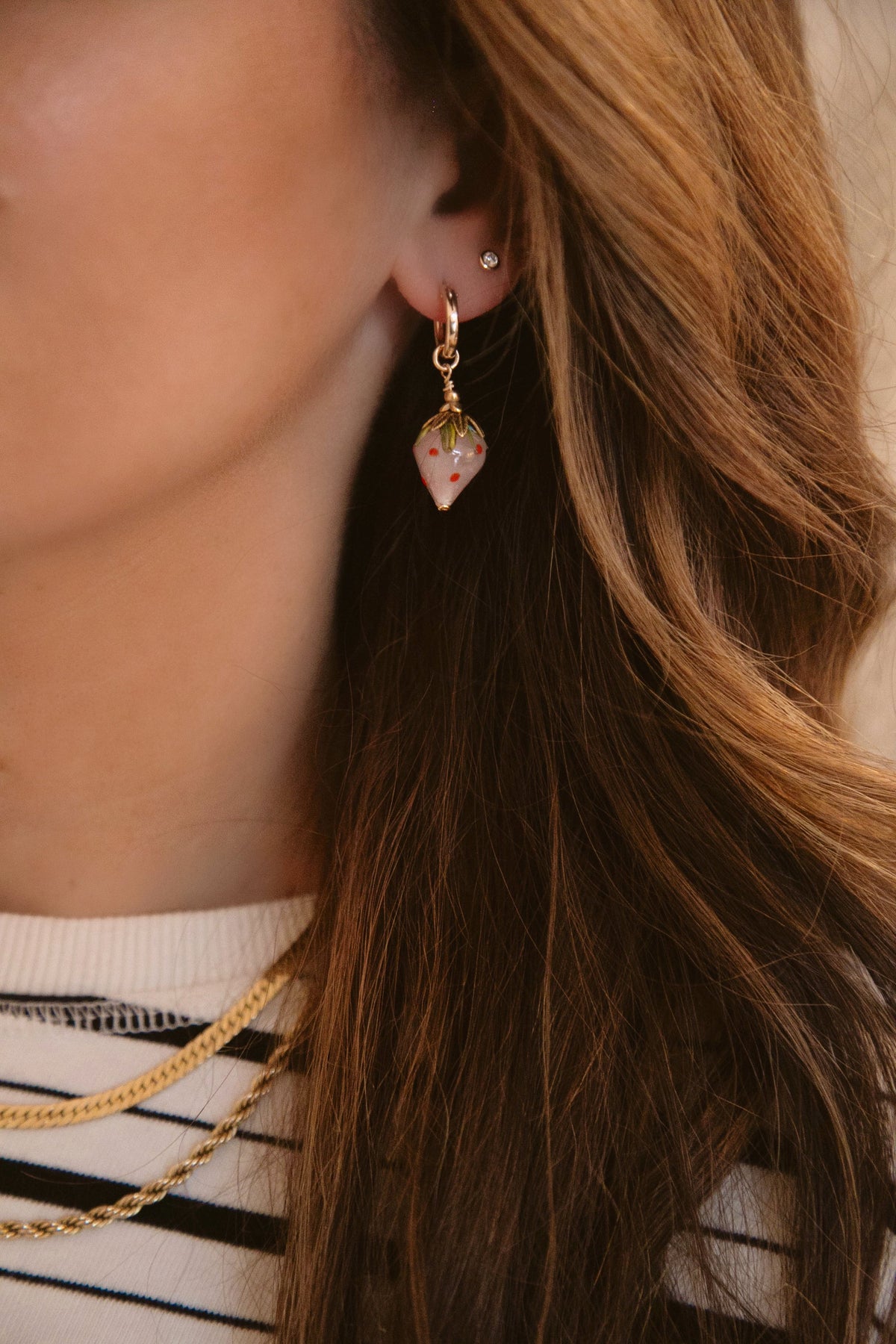 The mother-daughter duo behind Brinker + Eliza combine their experience in metalsmithing and fashion to create incredibly unique jewelry that feels custom-made. Employing pearls, shells, and earth’s most prized organic forms, these are pieces to be not just worn but treasured. Here, the Fruit Salad Huggies feature vintage charms that bring much-needed whimsy to any look.