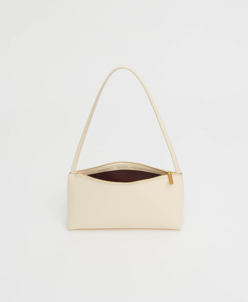 Founded in 2013, Mansur Gavriel redefines luxury through its distinctive approach to color and form. Born out of a passion for art and design, Rachel Mansur and Floriana Gavriel created two simple silhouettes—launching with just a bucket and tote. The brand’s designs, dreamt up in New York and crafted in Italy, continually challenge the notions of what expression can be. The Gaia Shoulder Bag in Crema is sleek and minimalist—an effortless underarm companion crafted from glossy Italian Spazzolato leather with a slender strap and zipper closure.