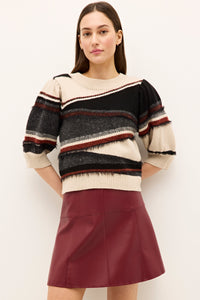 80% wool, 20% nylon. Slip-on silhouette. Relaxed fit through body with puff sleeves. Mixed-media yarn. Unlined.
