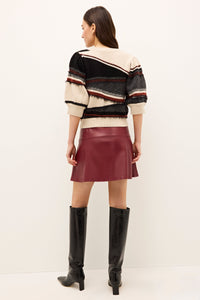 Empowering women through vivid hues and the joy of style, Sarah Doggett Evenson uses her archive of artistic prints, fine fabrics, and flattering silhouettes to make each Marie Oliver piece instantly uplifting. The Gail Top in Tectonic is a textured short-sleeve sweater with frayed fringe detailing and geometric slashes of autumnal color. Designed as a transitional style hack, it’s lightweight enough for warmer days yet layers beautifully into cooler months.