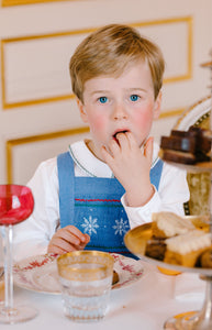 Antoinette Paris creates elegant, handmade garments for little girls and boys, designed in Paris with sophisticated, refined, and exclusive “Haute Couture” details. Their collections include dresses, dungarees, and bubbles, available from birth to 10 years old, made for any occasion and tailored for a new generation of children. The George Blue Flannel Boy Dungaree & Shirt Set is a winter favorite, designed to make Christmas tree family photos unforgettable. The heritage blue flannel dungarees are hand-smocked with white snowflake embroidery accented by green and red geometric details, while adjustable braces can be worn straight or crossed for a classic look. The included white cotton shirt features green embroidery on the Peter Pan collar, adding an extra touch of refinement.