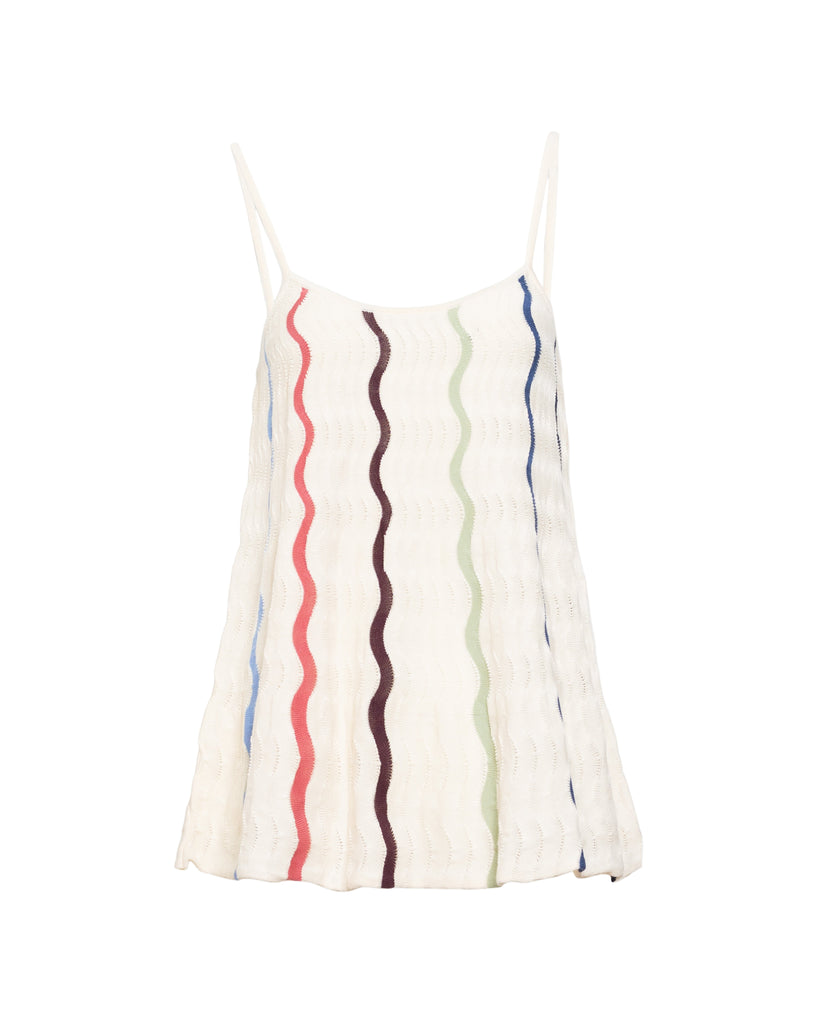 The Gigi Knit Tank in Cream Multi introduces a modern, feminine take on effortless resort style. Designed in a wavy crochet knit, this lightweight tank features delicate spaghetti straps and a square neckline that flatters with ease. Airy and versatile, Gigi transitions seamlessly from daytime lounging to sunset gatherings—pair it with the matching Lesley Knit Pant for a polished, coordinated look.