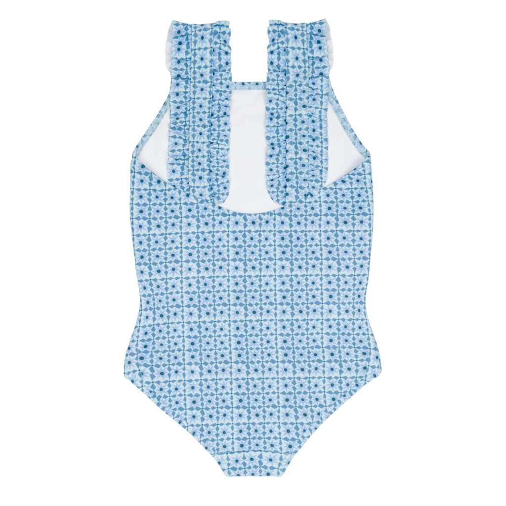 The Girls’ Azul Tile Ruffle Strap One Piece pairs a charming resort print with a timeless, easy silhouette. Designed with a clean square neckline, it features Minnow’s signature ruffles tracing the straps for a sweet, elevated touch. Fully lined for comfort and ease, it’s a lovely choice for long days spent in and out of the water.