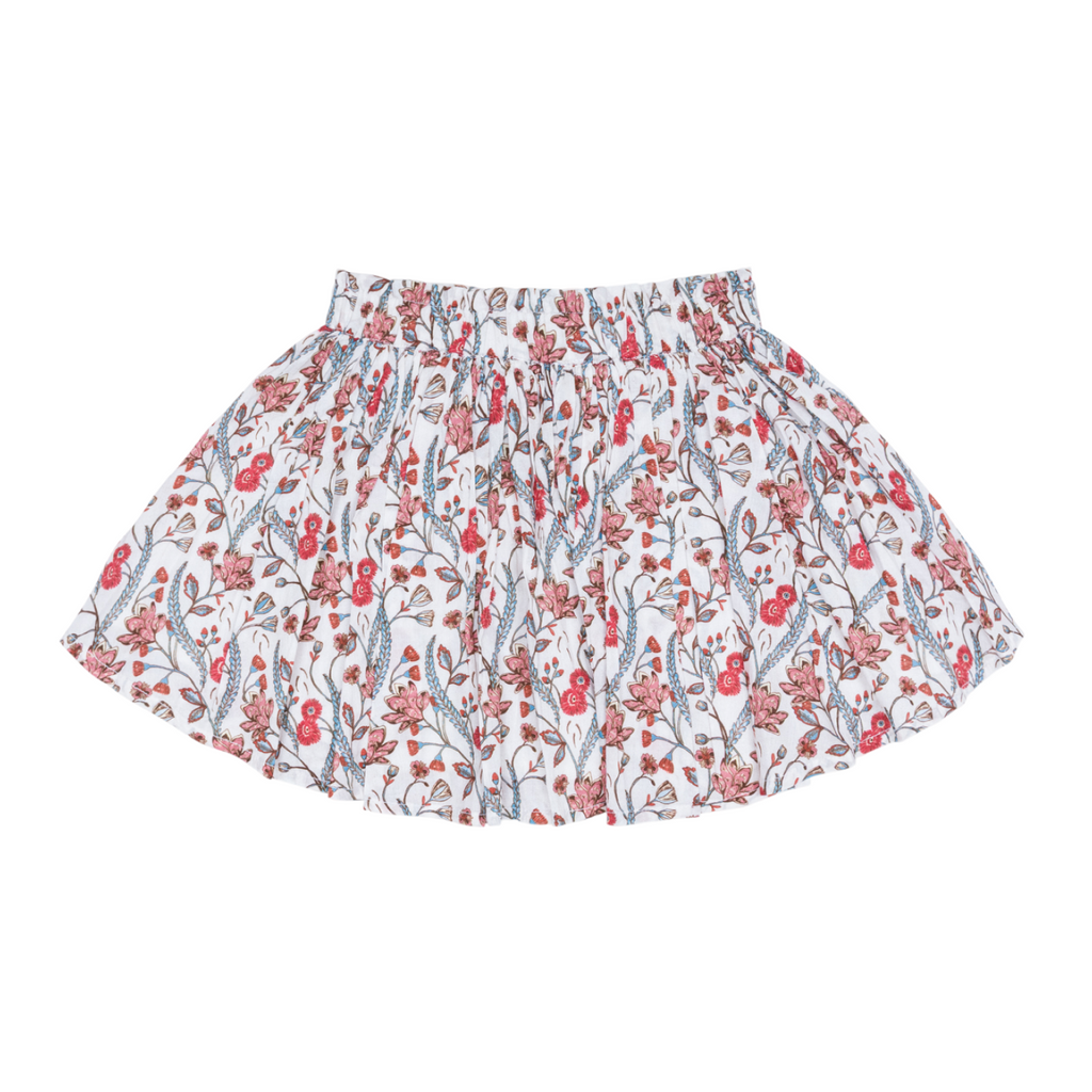 Mercado Bloom floral print. Pull-on design. Elastic paperbag waistband. Soft, lightweight fabric. Fully lined.