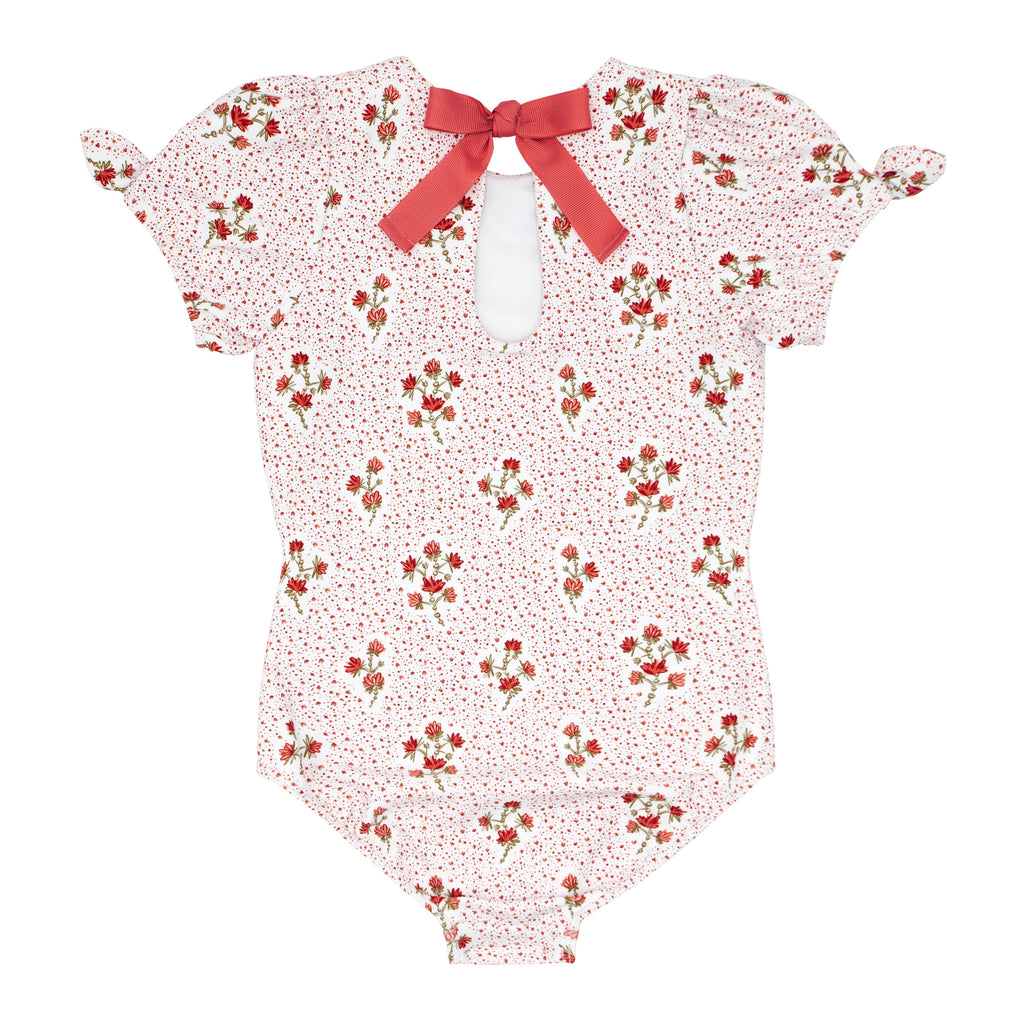 A family favorite for its clean lines and simple details, minnow creates pieces that are playful, polished, and thoughtfully designed for long days, sandy toes, and the wonderment of life on the shore. The Girls Raspberry Red Puff Sleeve One Piece is an elevated take on timeless swimwear, detailed with neat sleeve details, and a chic fixed grosgrain ribbon tie with a hidden button closure for easy changes Super cute and functional, in and out of the water, and they'll love the colorful berry print.