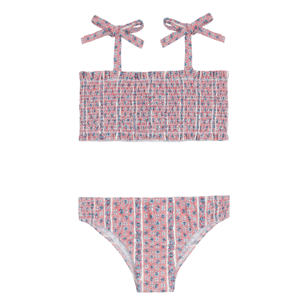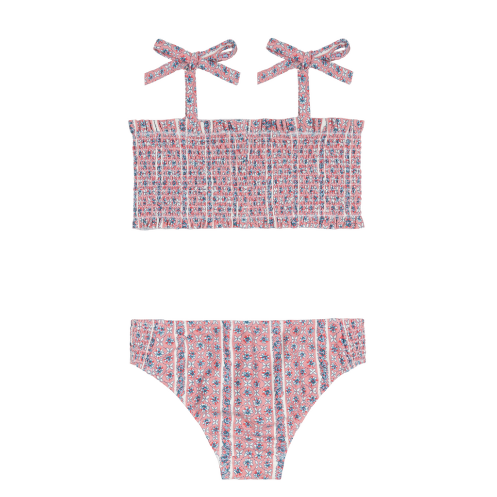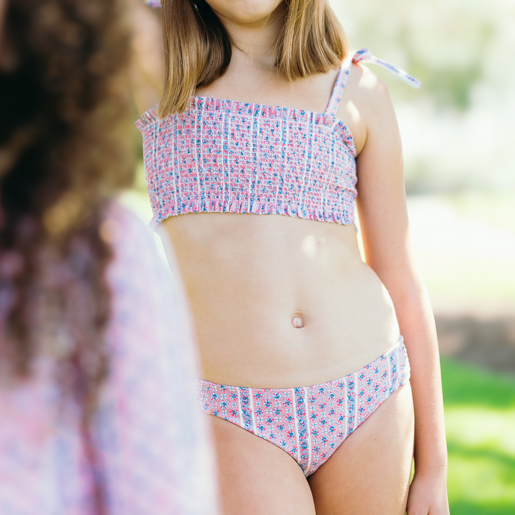 The Girls’ Rosa Vine Smocked Bikini offers a sweet, elevated update to a beloved Minnow silhouette. Designed with delicate smocking and the signature tie straps, this two-piece set blends charm with ease of movement. Fully lined for comfort, it’s a lovely choice for long days in and out of the water.