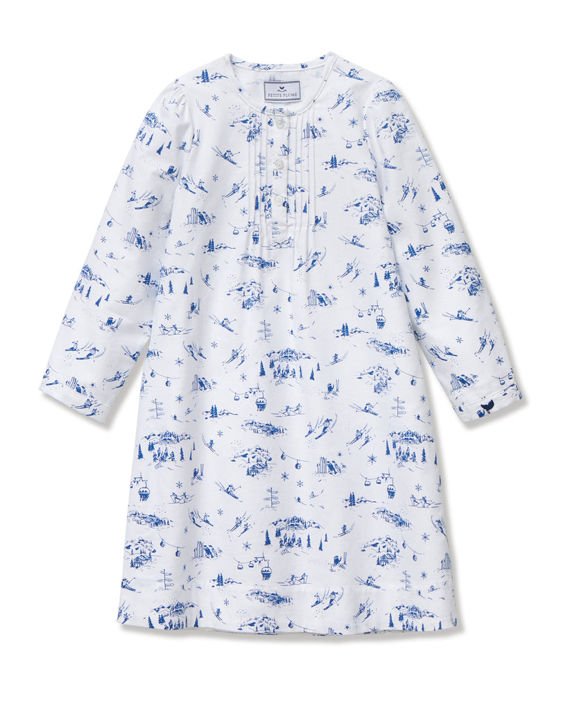Petite Plume wishes you a “bonne nuit,” and in their luxury sleepwear, it’s hard not to oblige. The Girl's Twill Beatrice Nightgown in Chalet Toile captures the delight of snowy getaways with a ski-inspired print made for winter adventurers and cozy dreamers alike. With an intricately designed placket and timeless silhouette, it’s a keepsake piece little ones will love to wear season after season.