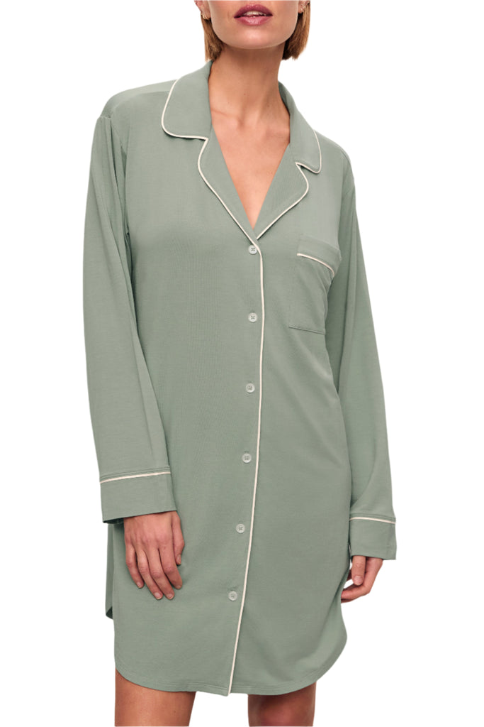 In 1996, Eberjey co-founders Ali and Mariela understood the visceral desire for beautiful, functional sleepwear that supported sleep and individual style. At last, pajamas can be sensual, comfortable, tailored, and effortless. The temperature-regulating knit fabric of the Gisele Sleepshirt in Eucalyptus/Ivory elegantly drapes and hangs on the body. The Gisele is anti-pilling, machine washable, and gentle on skin; so it not only feels beautiful but is also easy to care for, too.