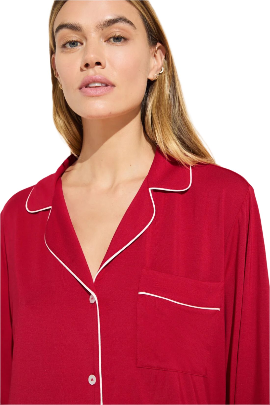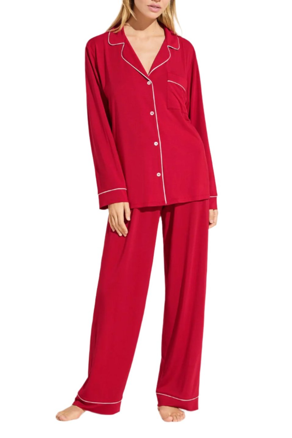 In 1996, Eberjey co-founders Ali and Mariela understood the visceral desire for beautiful, functional sleepwear that supported sleep and individual style. At last, pajamas can be sensual, comfortable, tailored, and effortless. The Gisele TENCEL™ Modal Long PJ Set in Haute Red/Ivory may very well be the world’s softest pajamas. The set is also anti-pilling, machine washable, and gentle on skin, so it not only feels beautiful but is also easy to care for, too.