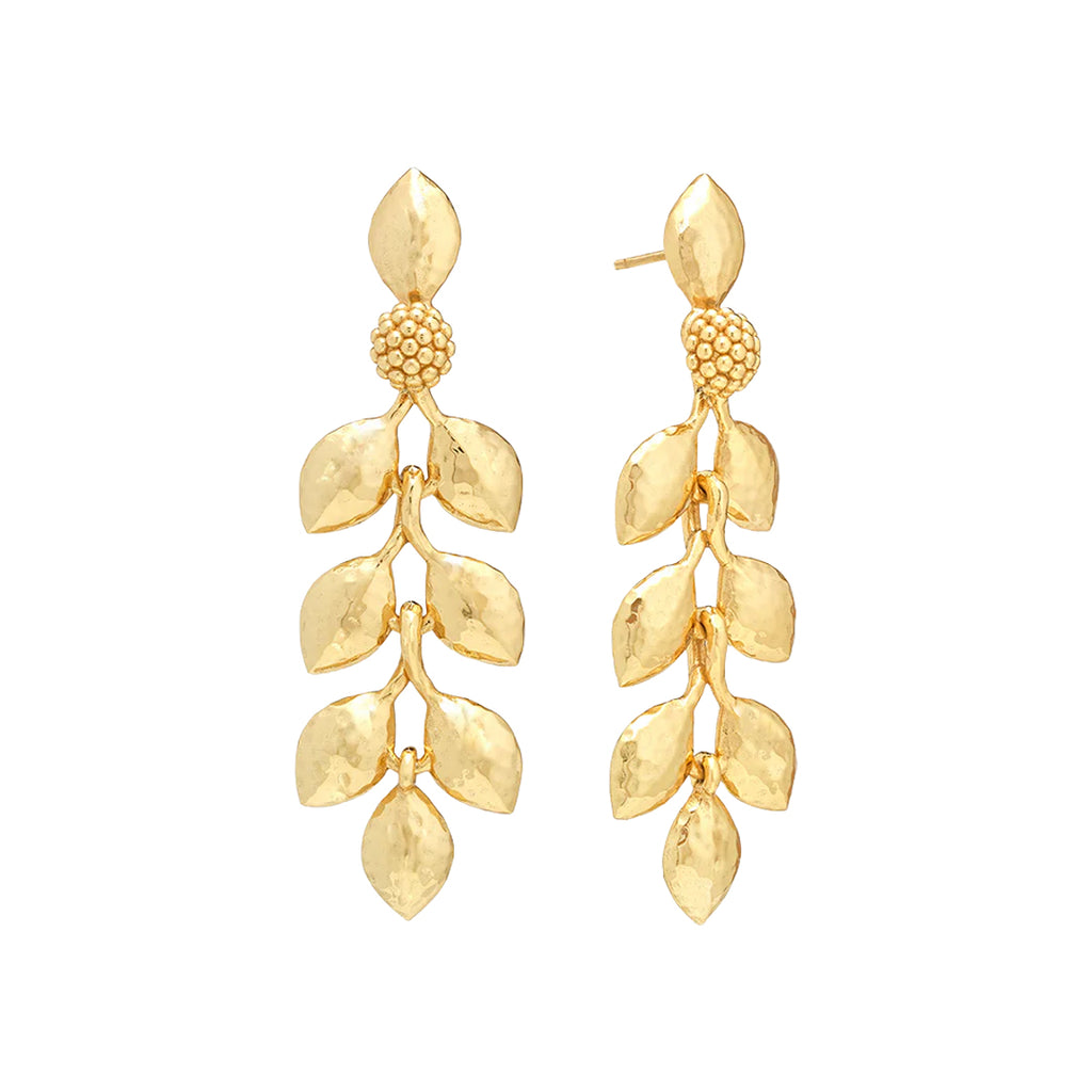 Half-Parisian, half-Texan, Capucine De Wulf’s unique upbringing was the inspiration for her namesake jewelry line. Her accessories combine French romance with an American sensibility. The Golden Laurel Dangle Earrings evoke the timeless elegance of ancient mythology—crafted in gleaming gold with laurel wreath motifs reminiscent of Helen of Troy’s legendary beauty. Exquisitely simple yet striking, this versatile pair adds a radiant touch of sophistication to any ensemble.
