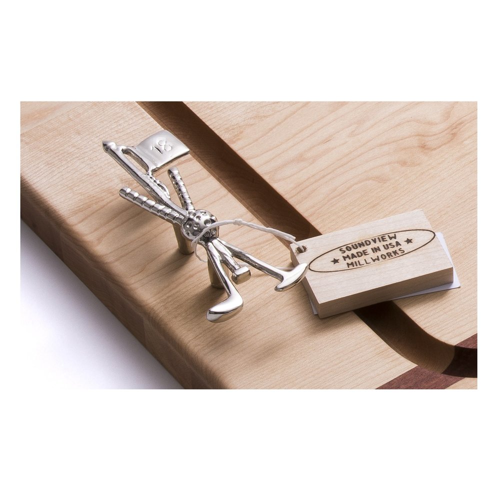Evoking classic New England style, Soundview Millworks’ handcrafted boards pair solid maple and mahogany with thoughtful details inspired by the nautical world and beyond. Designed to elevate entertaining, each piece offers heirloom-quality craftsmanship with personalized options that make every gathering feel bespoke. Featuring stainless steel golf club and flag handles, the Golf Club and Flag Double Handle Steak Board combines function and form with a generous juice groove and sturdy design—an impressive centerpiece for grilling nights or festive feasts.