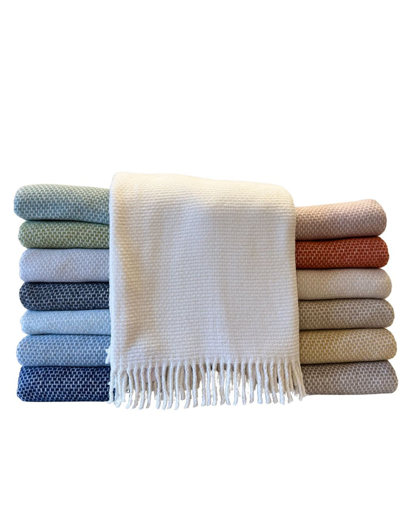 Founded by Claudia Vargish and based in Connecticut, A Soft Idea combines quality, comfort, and craftsmanship through luxurious cottons, chenilles, and imported yarns inspired by Italian and Spanish weaves. The Grain of Rice Throw Blanket is a beautifully textured accent that blends softness and sophistication. Expertly made in Spain from a cotton and microfiber acrylic blend, it features a distinctive grain-like weave that adds visual depth and cozy warmth to any room.