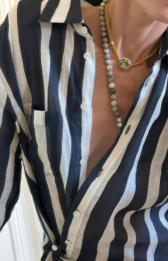 Courtney Leidy fuses the vibrant soul of Palm Beach with New York’s refined craftsmanship to create fine jewelry anchored in bold gemstones and timeless elegance. The Green Amethyst Silk Cord Pendant, Ochre Cord pairs a tranquil green amethyst gemstone with the warmth of ochre silk and gleaming 18K yellow gold. Delicate yet striking, this handcrafted piece evokes effortless sophistication with its serene palette and luminous finish.