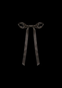 We recommend treating this bow as you would a piece of jewelry, and storing in the dust bag when not in use. Avoid contact with water, perfume, and other chemicals, including hairspray, which should be used before placement in the hair.