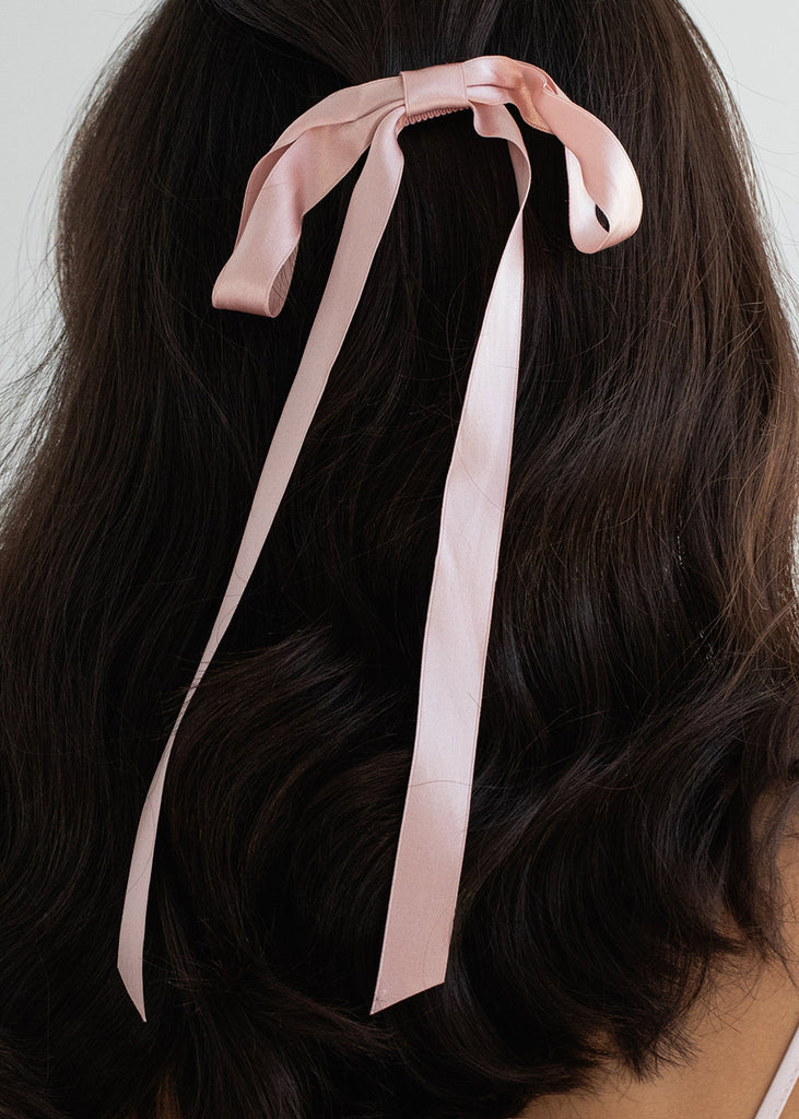 “Everything has a story to tell,” says Jennifer Behr, the founder of her namesake luxury hair accessory brand that has blossomed into one of New York City’s foremost ateliers for jewelry, as well as bridal. In every crystal, pearl, and ribbon, you’ll find the utmost quality and a sense of romance, as each piece reveals a modern interpretation of centuries-old regalia. The Gretta Bow Barrette exudes the elegant insouciance of a ribbon casually tied in the hair, with the convenience of an easy-to-fasten barrette. The expertly draped silk ribbon stands out for its exceptional quality; each bow is crafted by hand. The automatic French barrette closure makes it versatile enough to wear in an endless number of hairstyles, in any type of hair.