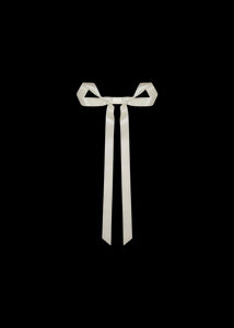 We recommend treating this bow as you would a piece of jewelry, and storing in the dust bag when not in use. Avoid contact with water, perfume, and other chemicals, including hairspray, which should be used before placement in the hair.