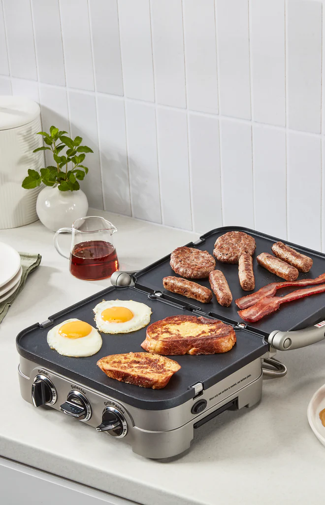 Founded in 1971 by Carl Sontheimer, Cuisinart revolutionized American home cooking by introducing the food processor, inspired by French culinary innovation. Now a leading name in premium kitchen appliances, the brand continues to champion creativity and excellence through thoughtfully designed tools embraced by chefs and home cooks alike. The Griddler® redefines versatility with five cooking options in one compact design—serving as a contact grill, panini press, full grill, full griddle, or half grill/half griddle. From weekend breakfasts to weeknight dinners, it makes mealtime effortless and delicious.
