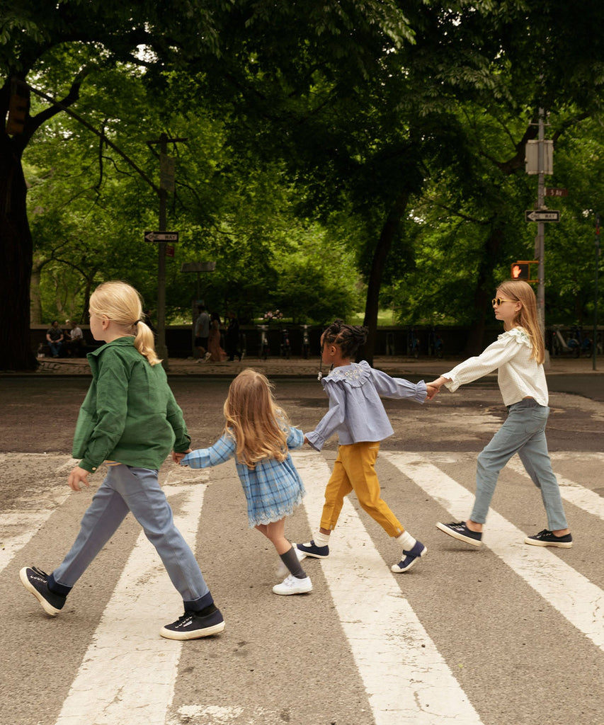 Oso and Me makes children’s clothing that’s easily worn, easily washed, and makes getting dressed fun. Sustainably crafted, with growing kids in mind, these high-quality pieces are made with an eye for detail, and to last. The Grow Pant in Chambray was designed to meet the need for effortless, adaptable children’s clothing. Made in soft corduroy, this easy pull-on style features a clean cuff that allows for an extra year of wear, and interior buttonhole elastic for an adjustable fit. A faux zipper panel and stationary button add a polished finish, while the high-waist design can be lowered as little ones grow. Cropped or uncropped, it’s a versatile essential that transitions seamlessly through the years—and is also available in baby sizes.